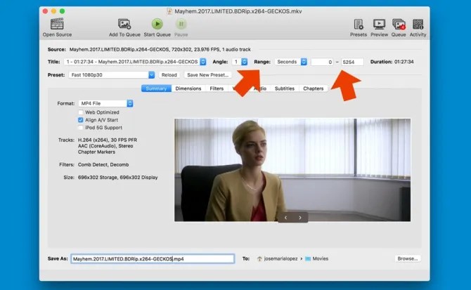 Lo mismo podemos hacer con segundos, desde Range. Además, al usar segundos podremos seleccionar una escena concreta que queramos guardar. Eso sí, para saber dónde empieza y acaba dicha escena necesitaremos verla en un reproductor de vídeo como VLC.
