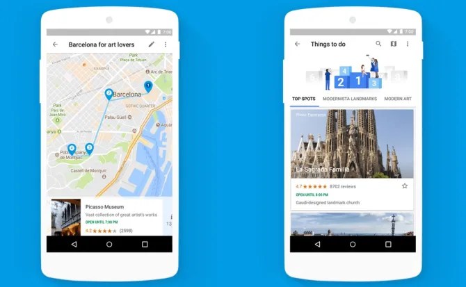 Google Trips incorpora esta opción, de manera que agrupa tus reservas en Gmail y organiza tu viaje en consecuencia. Como si fuera tu propio asistente de viaje, te recomendará actividades y lugares donde comer y descansar en función de tus reservas de vuelos, hoteles, restaurantes, coches de alquiler… Sin que tú tengas que decirle nada.